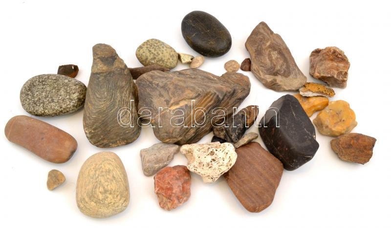 Leírás: Kb. 30 db ásvány és kőzet, benne kvarchomokkő, obszidián, opálkövek, stb.