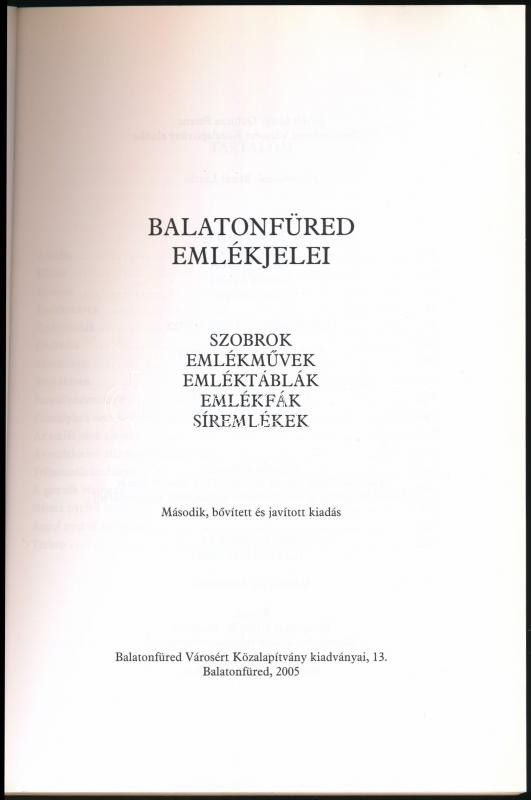 Balatonfüred emlékjelei. Szobrok, emlékművek, emléktáblák, emlékfák, síremlékek. Szerk.: Bándi László. Balatonfüred, 2005., Balatonfüred Városért Közalapítvány. Második, bővített és javított kiadás. Kiadói papírkötés. Két szerző, Elek Miklós és Tóth Györgyi által dedikált. Megjelent 1000 példányban.