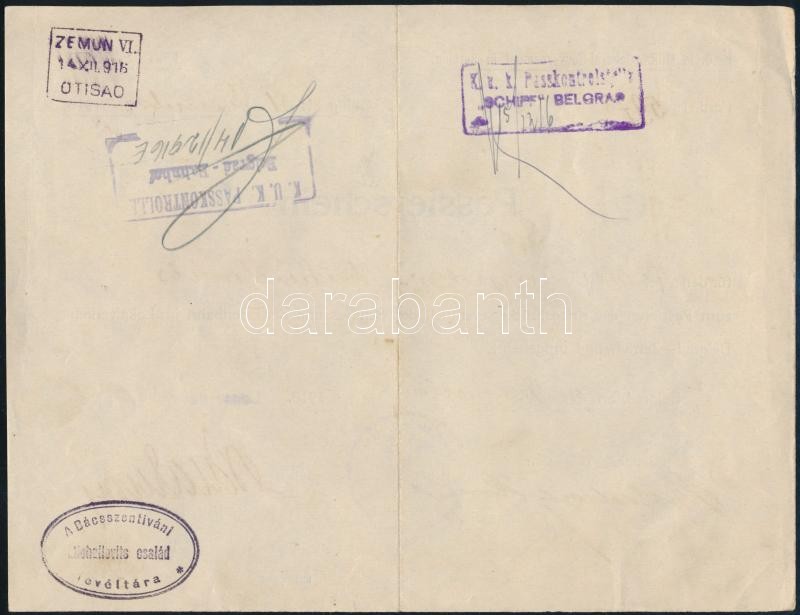 Leírás: 1916 Belgrád, K. u. k. Militär-General-Gouvernement által kiállított utazási engedély