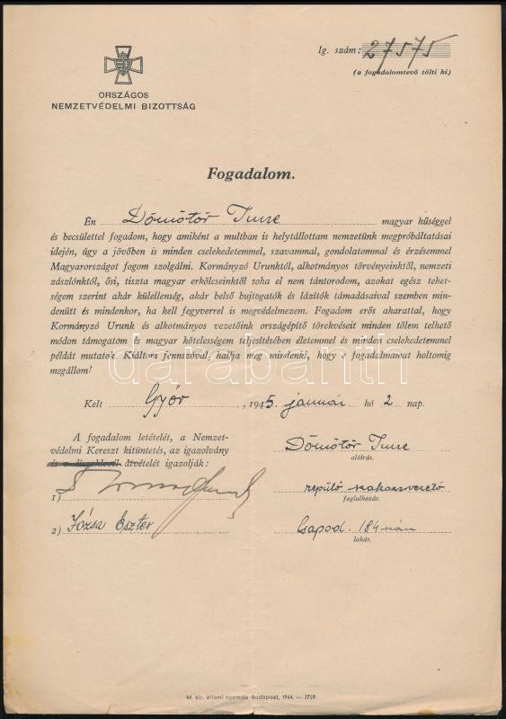 1945 Győr, Repülő szakaszvezető nemzetvédelmi fogadalma az Országos Ne... https://www.darabanth.com/hu/378-Gyorsarveres/378.0/Mutargy-papirregiseg-egyeb/Militaria~500028/1945-Gyor-Repulo-szakaszvezeto-nemzetvedelmi-fogadalma-az-Orszagos-Nemzetvedelmi-Bizottsag-~II2174424