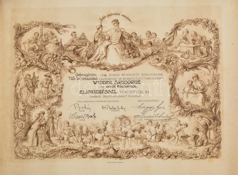 1926 Adony, Rácalmás oklevél 40x30 cm