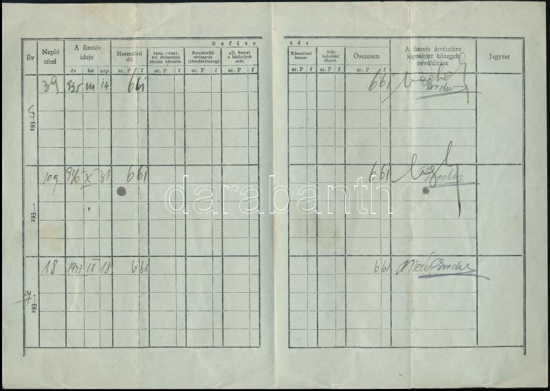1935-1937 Csénye, Használati díj fizetési könyvecske https://www.darabanth.com/hu/378-Gyorsarveres/378.0/Mutargy-papirregiseg-egyeb/Okmanyok~500018/1935-1937-Csenye-Hasznalati-dij-fizetesi-konyvecske~II2191639