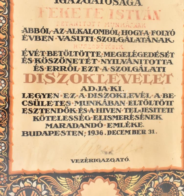 1936 BSZKRT emléklap 25 éves szolgálat emlékére. 34x51 cm https://www.darabanth.com/hu/378-Gyorsarveres/378.0/Mutargy-papirregiseg-egyeb/Okmanyok~500018/1936-BSZKRT-emleklap-25-eves-szolgalat-emlekere-34x51-cm~II2215684