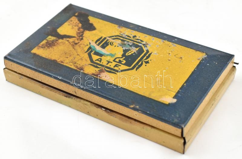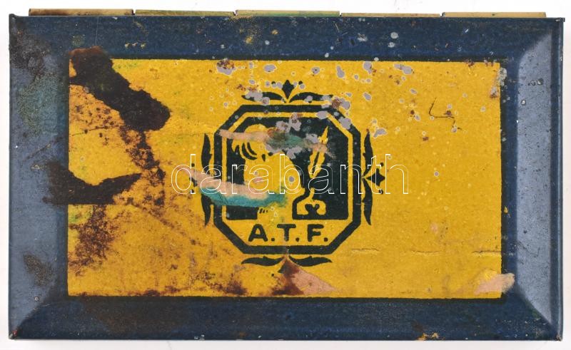 Leírás: "Albertfalvai Tinta és Festékgyár, Budapest" tintapárnás fémdoboza, kopott, 12x7x2 cm