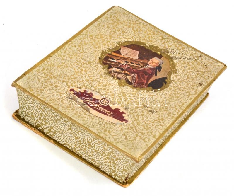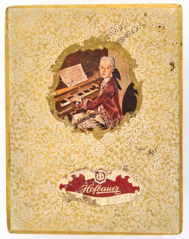 Leírás: Hofbauer régi bonbonos kartondoboz, kopásnyomokkal, a doboz alján tintás firkával, 14x18x4 cm