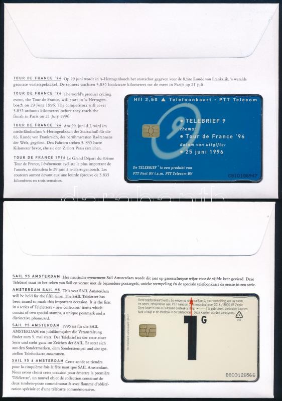 Leírás: 1995 Amsterdam Sail, holland telefonkártya, bélyeges emléklappal + 1996 Tour de France francia telefonkártya, bélyeges emléklappal