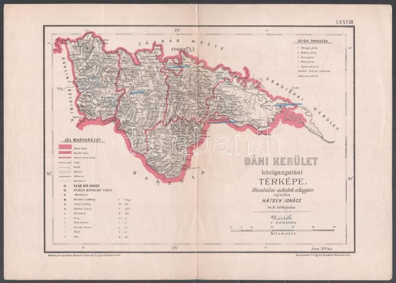 Leírás: cca 1890 Hátsek Ignác: Báni kerület közigazgatási térképe 40x27 cm