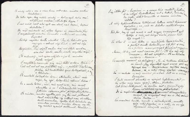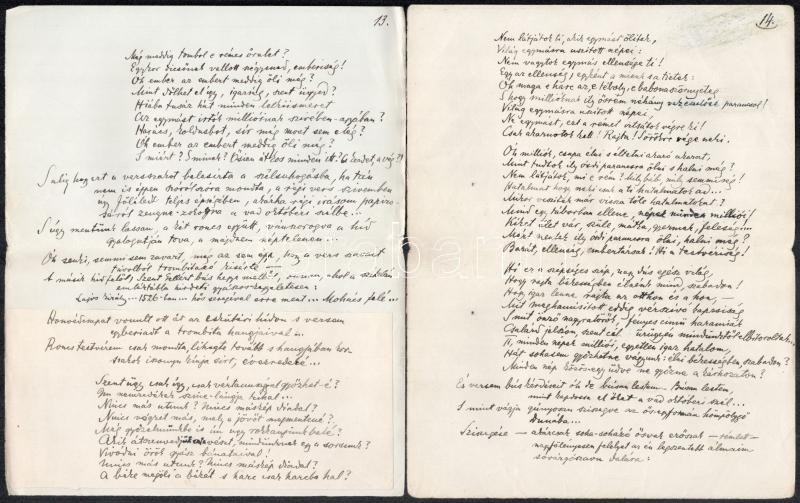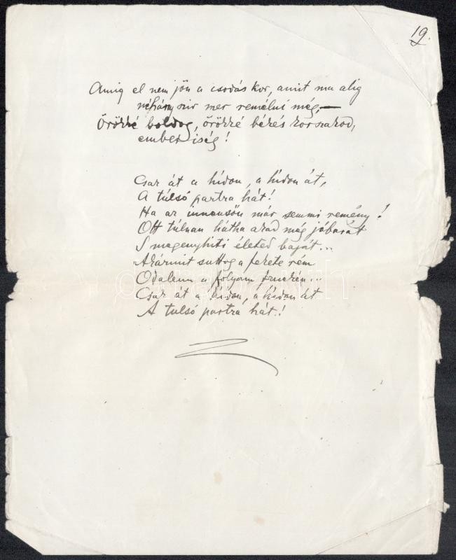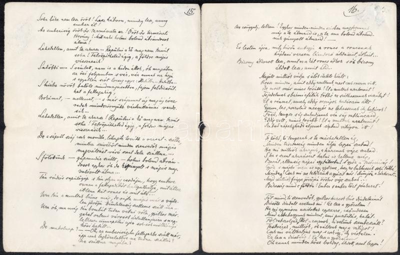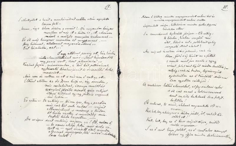 cca 1920 Telekes Béla (1873-1960) Baumgarten-díjas költő, műfordító Hídon c. verses kézirata 19 kézzel beírt oldalon. Telekes a modern magyar líra egyik előfutára volt akinek első kötetét Ady is üdvözölte. Szabadabb verstannal is kísérletezett. De a Nyugat nagy nemzedékével már nem tudott versenyre kelni.1923-ban Tóth Árpád így méltatta: "A huszadik század elejének gyermekei az ő verseiből hallották először a modern lélek megbúvó halkságú szívhangjait."