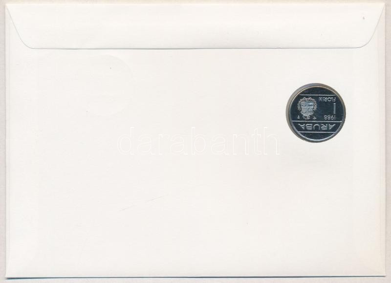 Aruba 1988. 1 Florin Cu-Ni "Beatrix" coin letter with stamp and German description C:XF (originally PP)