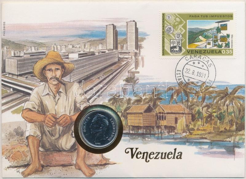 Venezuela 1989. 2B acél érmés borítékon bélyegzős bélyeggel, német nyelvű leírással T:1,1-