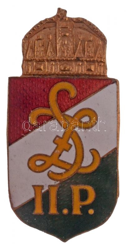Leírás: 1932. "Sz II.P. (Szeged II. kerületi Polgári Iskola" aranyozott, zománcozott iskolai sapkajelvény, eredeti pántokkal és tolltartóval (51x24mm) T:1