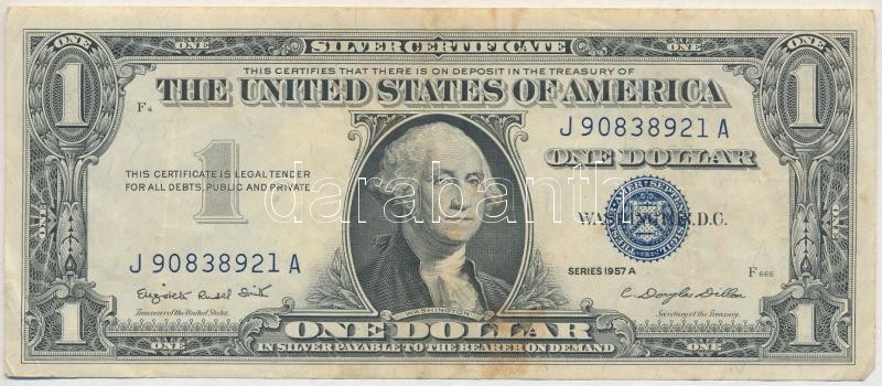 Amerikai Egyesült Államok 1961-1962. (1957A) 1$ "Silver Certificate - kisméretű", kék pecsét, "Elizabeth Rudel Smith - C. Douglas Dillon" T:III fo.