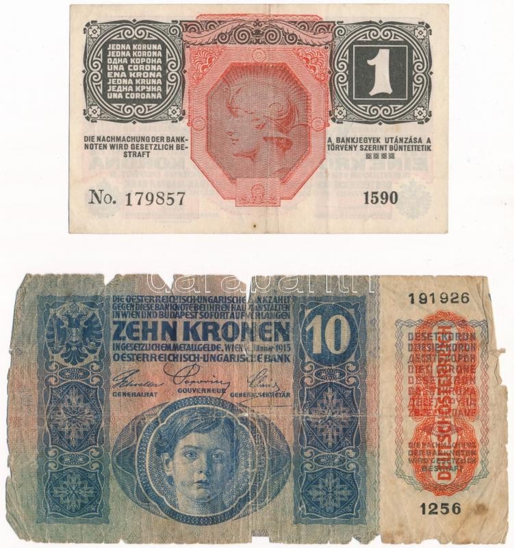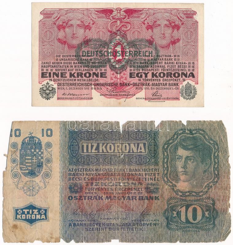 Leírás: 1915. 10K + 1916. 1K mindkettő "DEUTSCHÖSTERREICH" felülbélyegzéssel T:III,IV Adamo#K11M,K3M