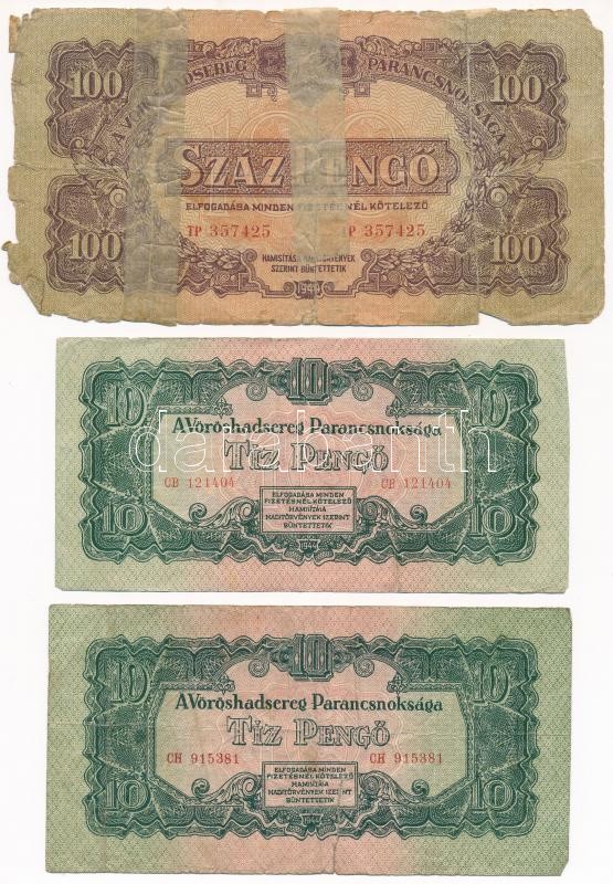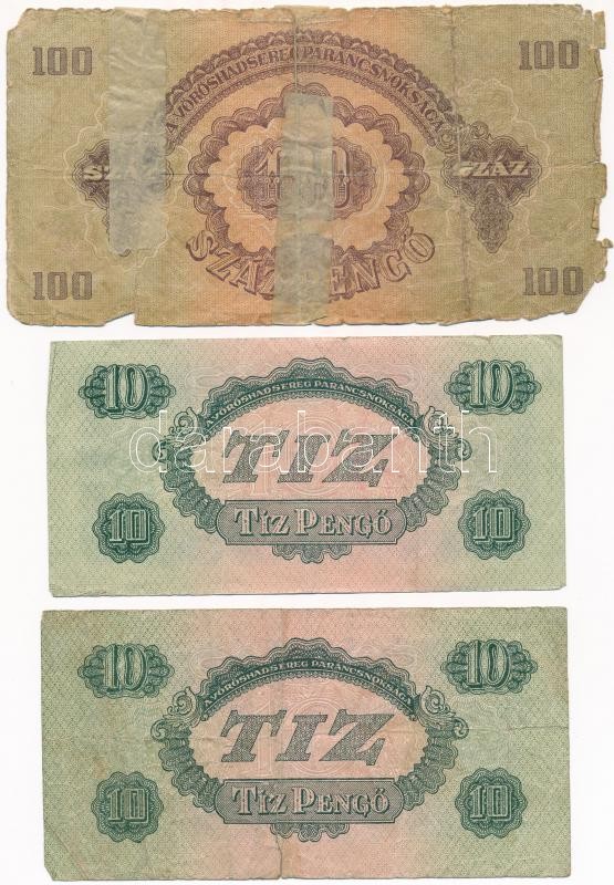 Leírás: 1944. 10P " A Vöröshadsereg Parancsnoksága" (2x) + 100P "A Vöröshadsereg Parancsnoksága" T:III,IV 1 ragasztott Adamo P44,P47