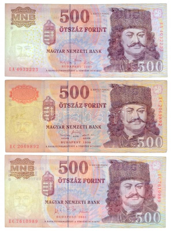 1998. 500Ft + 2006. 500Ft "A forradalom 50. évfordulója" + 2... https://www.darabanth.com/hu/378-Gyorsarveres/378.0/Numizmatika/Magyar-bankjegyek~2000006/1998-500Ft-plus-2006-500Ft-A-forradalom-50-evforduloja-plus-2007-500Ft-TIII~II2171888
