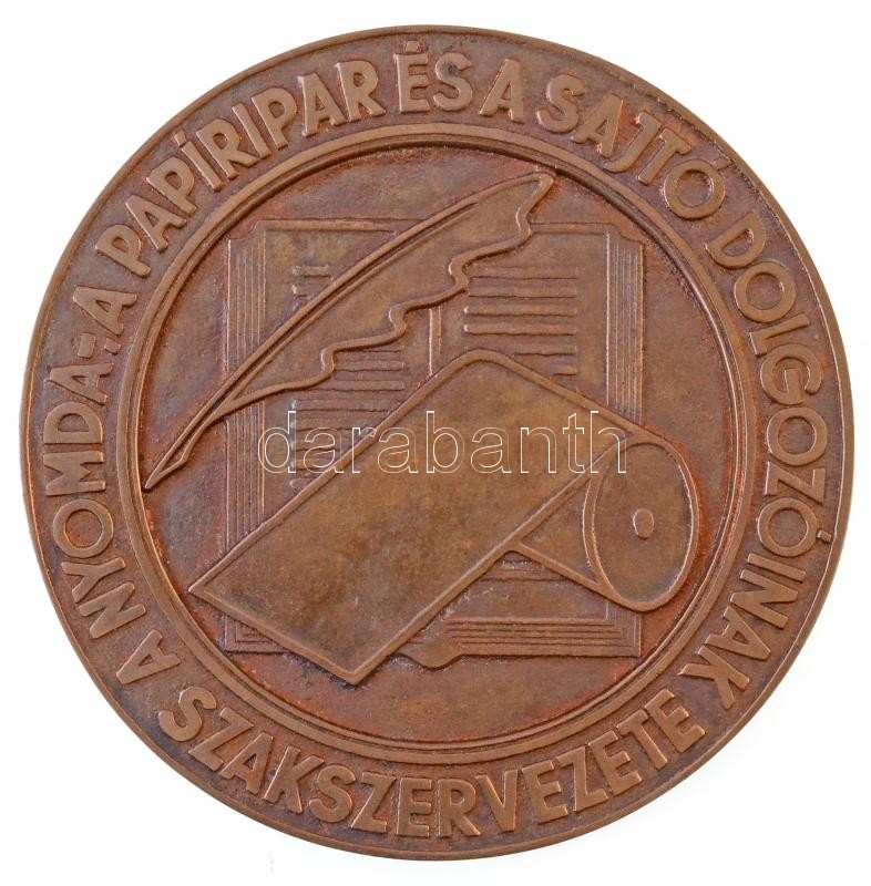 DN "A NYOMDA-, A PAPÍRIPAR ÉS A SAJTÓ DOLGOZÓINAK SZAKSZERVEZETE" egyoldalas Br plakett, hátoldalon "60 éves hűséges szakszervezeti tagságért" gravírozással (118mm) T:2