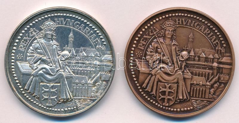 Leírás: Renner Kálmán (1927-1994) DN "Mátyás király" jelzett Ag és Br emlékérem pár (37,75g/0.835/42,5mm) T:1 patina