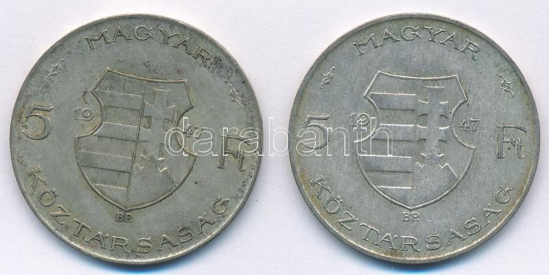 Leírás: 1947. 5Ft Ag "Kossuth" (2x) T:2-,3 patina Adamo F8.1