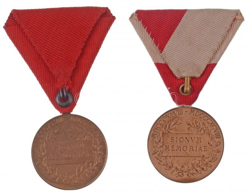 1898. "Jubileumi Emlékérem Fegyveres Erő Számára / Signum memoriae (AVSTR)" és "Jubileumi Emlékérem Polgári Állami Alkalmazottak Számára / Signum memoriae (AVST)" Br kitüntetés eredeti mellszalaggal (2xklf) T:2 ph.