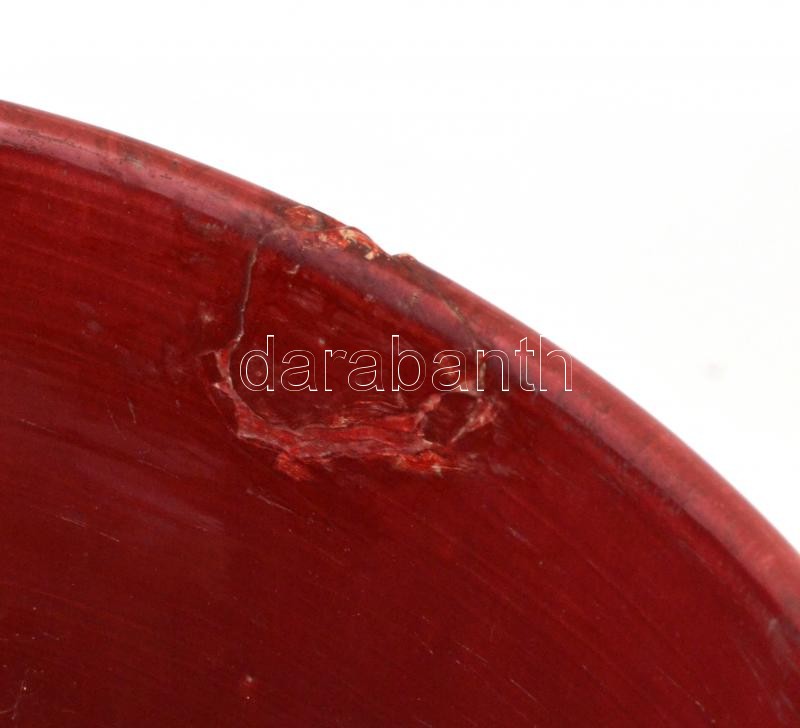 Leírás: Rubinvörös nagy méretű szecessziós kaspó, puttós frízzel. Formaszámmal. Egy megragasztott sérüléssel. d: 34 cm, m: 27 cm