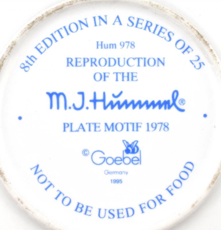 Hummel-Goebel disztányér. Matricás, jelzett, hibátlan, tartóval d: 8 c... https://www.darabanth.com/hu/378-Gyorsarveres/378.0/Porcelan-keramia-uveg/Porcelan~500005/Hummel-Goebel-disztanyer-Matricas-jelzett-hibatlan-tartoval-d-8-cm~II2194136