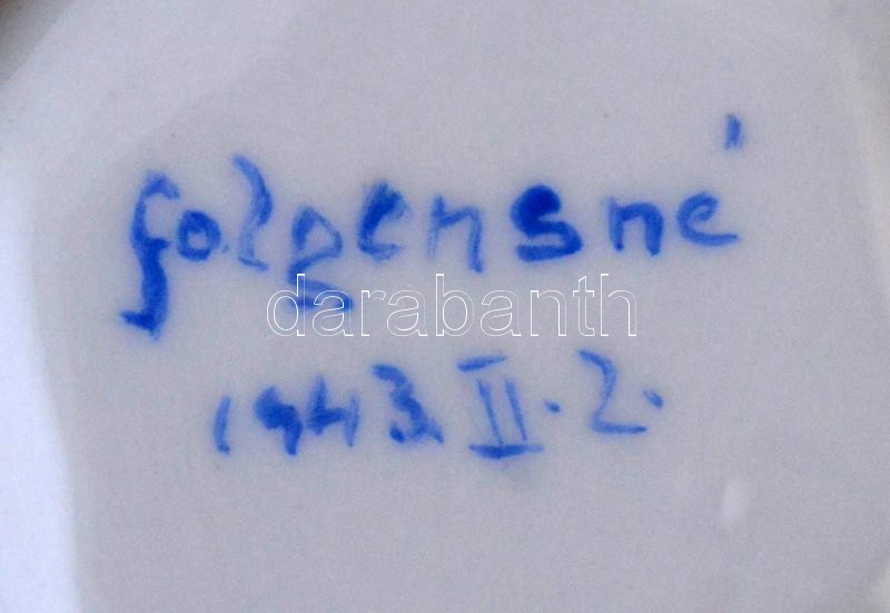 Leírás: Kis porcelán csésze csészealjjal, kézzel festett, jelzett, kis kopásnyomokkal, d: 10 cm, m: 4,5 cm