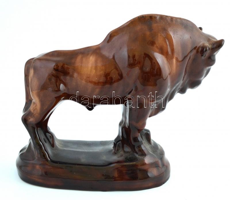 Leírás: Porcelán bölény, kézzel festett, jelzetlen, apró lepattanással, 20,5x26 cm