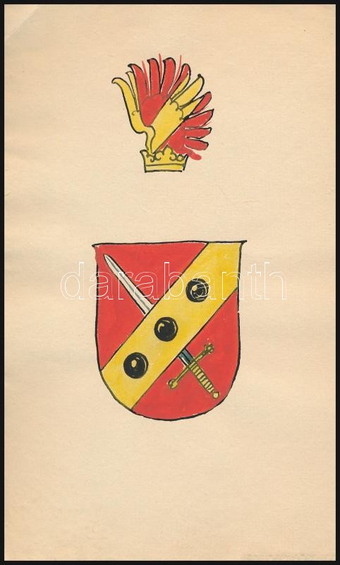 Fritz Junginger (?-?): Címerterv, vegyes technika, papír, jelzés nélkü... https://www.darabanth.com/hu/379-Gyorsarveres/379.0/Festmenyek-es-grafikak/Festmenyek-es-grafikak~500001/Fritz-Junginger-Cimerterv-vegyes-technika-papir-jelzes-nelkul-16-5x10-cm~II1654199