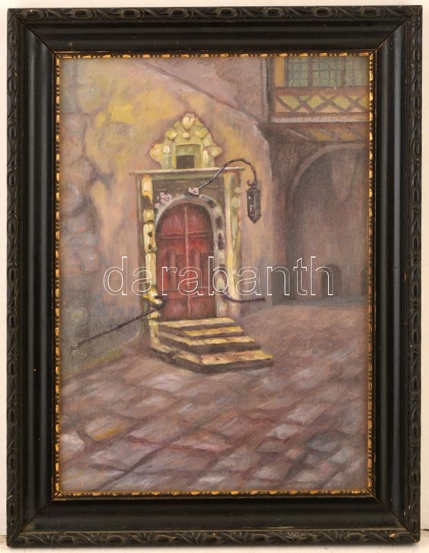 Leírás: Jelzés nélkül: Kapualj, olaj, fa, üvegezett fa keretben, 35×24 cm