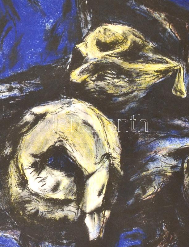 Leírás: Nagy Árpád "Pika" (1950-): Alakok. Litográfia, papír, jelzés nélkül, lap széle sérült, litográfia ép, 41,5x59,5 cm