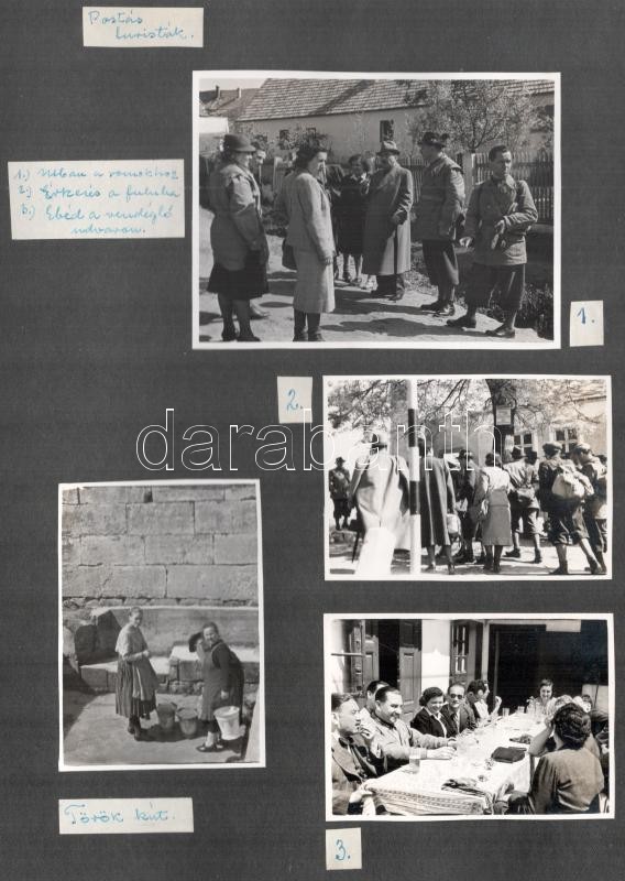 1941 Zsámbék, a sváb falu, 37 db beragasztott, feliratozott fotó albumtömbben, szép állapotban, benne a híres labdatánccal, jelentős helytörténeti anyag, vegyes méretben