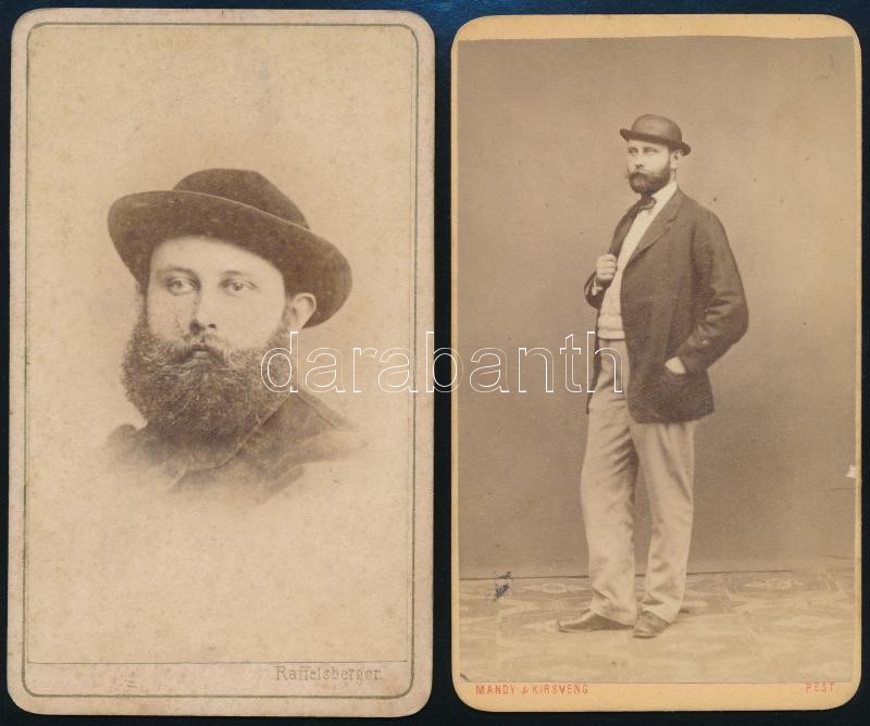 Leírás: cca 1860 2 db keményhátú fotó Mándy és Kirsveng, Raffelsberger műterméből, 10,5×6 cm