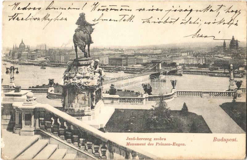 1905 Budapest I. Jenő herceg szobra. Divald Károly 618. (EK) https://www.darabanth.com/hu/379-Gyorsarveres/379.0/Kepeslapok/Magyarorszag~1500005/1905-Budapest-I-Jeno-herceg-szobra-Divald-Karoly-618-EK~II2105061