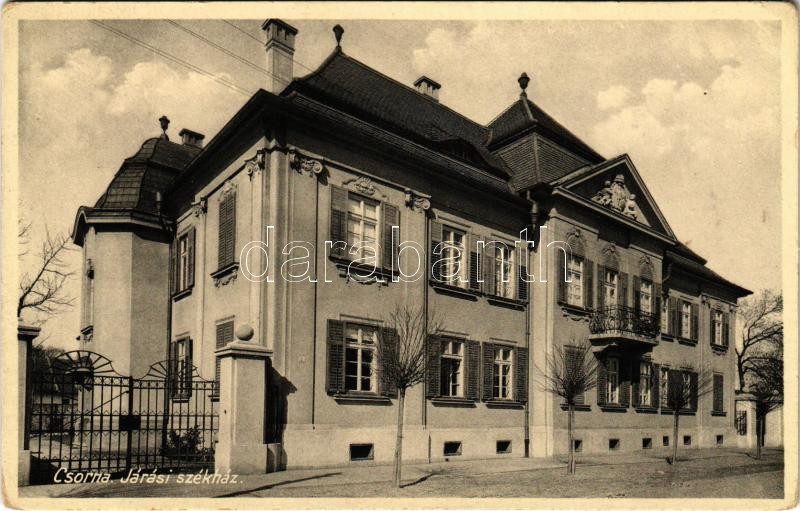 1936 Csorna, Járási székház https://www.darabanth.com/hu/379-Gyorsarveres/379.0/Kepeslapok/Magyarorszag~1500005/1936-Csorna-Jarasi-szekhaz~II2174701