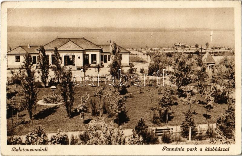 1940 Zamárdi, Balaton-Zamárdi; Pannonia park a klubházzal (EK) https://www.darabanth.com/hu/379-Gyorsarveres/379.0/Kepeslapok/Magyarorszag~1500005/1940-Zamardi-Balaton-Zamardi-Pannonia-park-a-klubhazzal-EK~II2140462