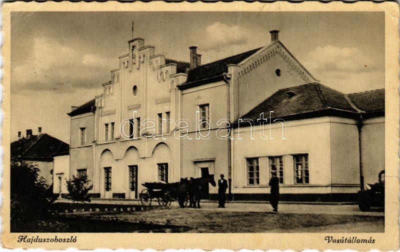 1943 Hajdúszoboszló, Vasútállomás (gyűrődés / crease) https://www.darabanth.com/hu/379-Gyorsarveres/379.0/Kepeslapok/Magyarorszag~1500005/1943-Hajduszoboszlo-Vasutallomas-gyurodes-crease~II2245324