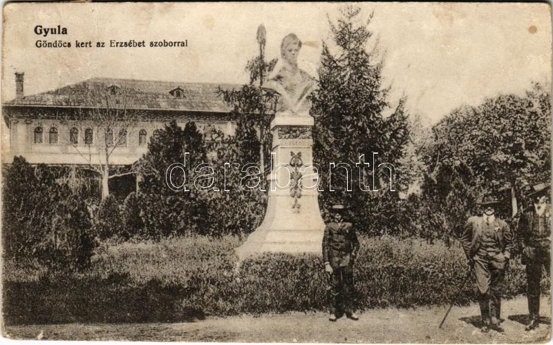 Gyula, Göndöcs kert az Erzsébet királyné (Sisi) szoborral. Leopold nyo... https://www.darabanth.com/hu/379-Gyorsarveres/379.0/Kepeslapok/Magyarorszag~1500005/Gyula-Gondocs-kert-az-Erzsebet-kiralyne-Sisi-szoborral-Leopold-nyomda-kiadasa-fa~II2245523