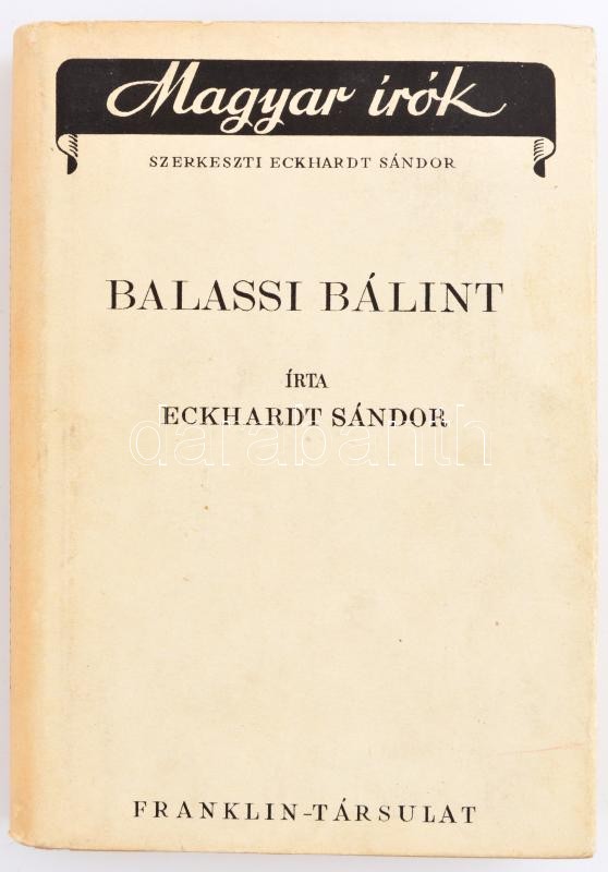 Eckhardt Sándor: Balassi Bálint. Magyar Írók. Bp.,[1941],Franklin, 224+2 p. Kiadói félvászon-kötés, kiadói papír védőborítóban, egy lapon ceruzás aláhúzással, egy másikon ceruzás bejelöléssel, egyébként szép állapotban.