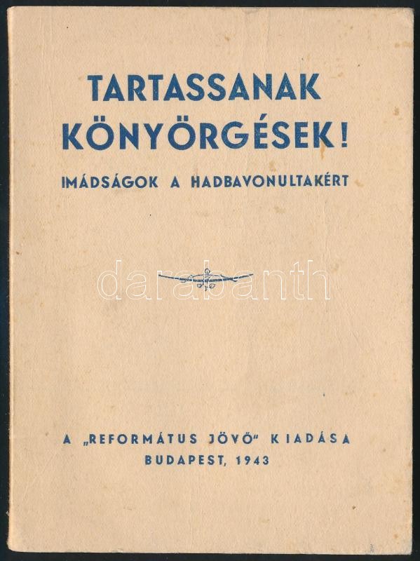 Tartassanak könyörgések. Imádságok a hadbavonultakért. Bp., 1943. Refo... https://www.darabanth.com/hu/379-Gyorsarveres/379.0/Konyvek/Konyvek-Militaria-Katonasag~1000005/Tartassanak-konyorgesek-Imadsagok-a-hadbavonultakert-Bp-1943-Reformatus-Jovo-Kiadoi-p~II2027601