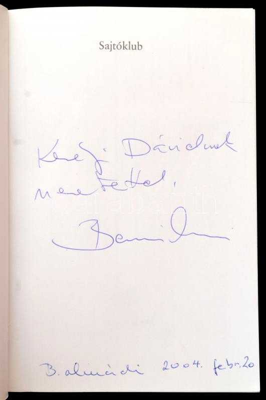 Bayer Zsolt-Bencsik András-Lovas István-Molnár Tamás-Tóth Gy. László: Sajtóklub. 2001-2002. Bp.,2003,Kairosz. Kiadói papírkötés. Az egyik szerző, Bencsik András által dedikált.