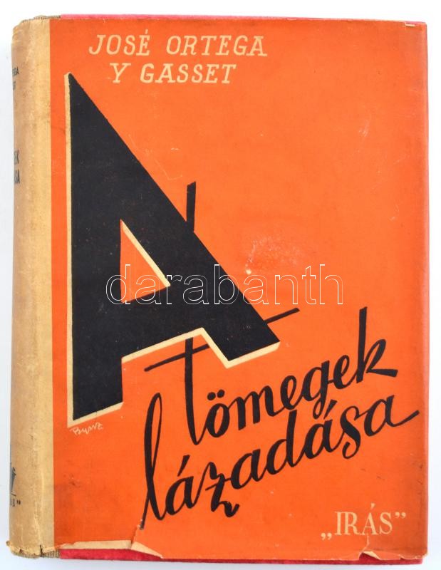 José Ortega Y Gasset: A tömegek lázadása. Második kiadás. Bp., é.n., Hindy András könyvkiadó és könyvterjesztő vállalata. Kiadói félvászon kötésben, kiadói papír védőborítóban, bejegyzéssel.