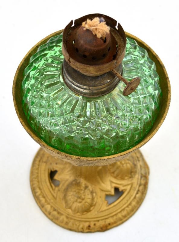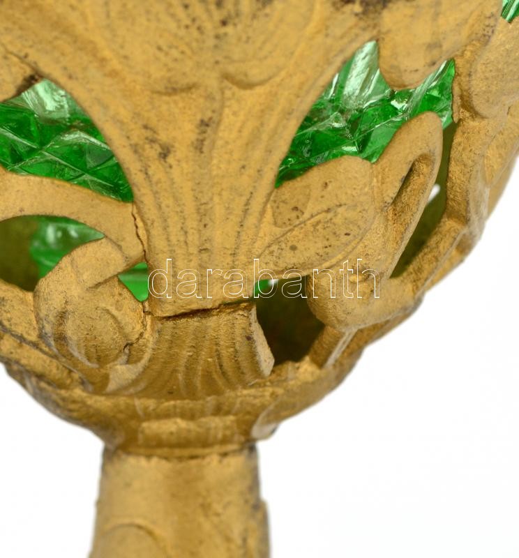 Leírás: Szecessziós lámpa, a test törött, repedezett, kopott, kis darab hiányzik belőle, m: 22 cm