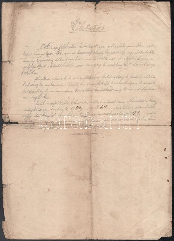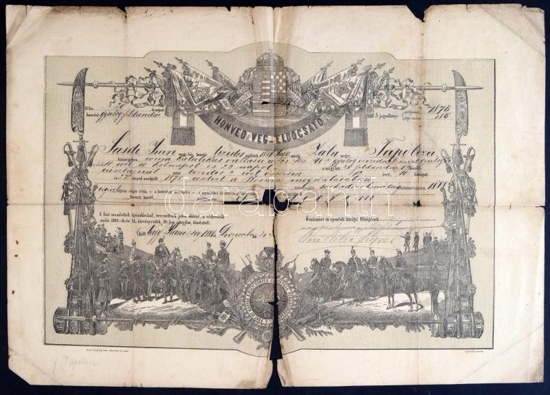 Leírás: 1888 Nagykanizsa, végelbocsátó levél tizedes részére, sérült