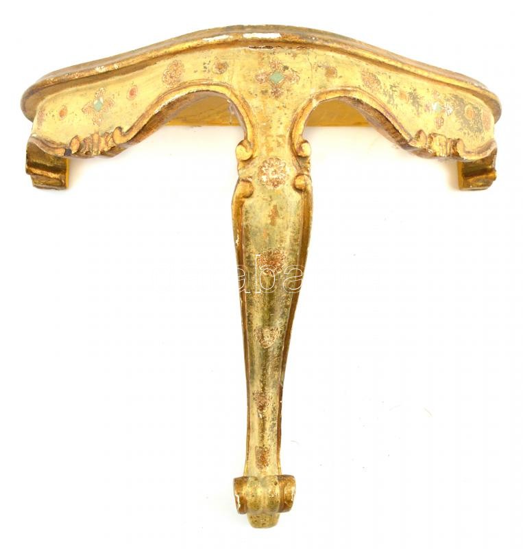 Leírás: Neorokokó fali konzol. Kézzel festett fa kis sérülésekkel. 36x36 cm