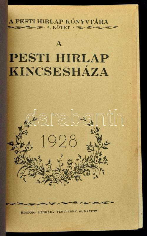 1928 A Pesti Hírlap kincsesháza 1928. Pesti Hírlap Könyvtára 4. kötet.... https://www.darabanth.com/hu/379-Gyorsarveres/379.0/Mutargy-papirregiseg-egyeb/Nyomtatvanyok~500030/1928-A-Pesti-Hirlap-kincseshaza-1928-Pesti-Hirlap-Konyvtara-4-kotet-Bp-Legrady-Kiadoi~II1705526
