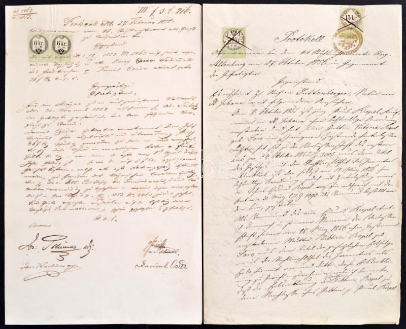 Leírás: 1856-1868 6+6 kr és 15+30 kr okmánybélyeggel ellátott irat