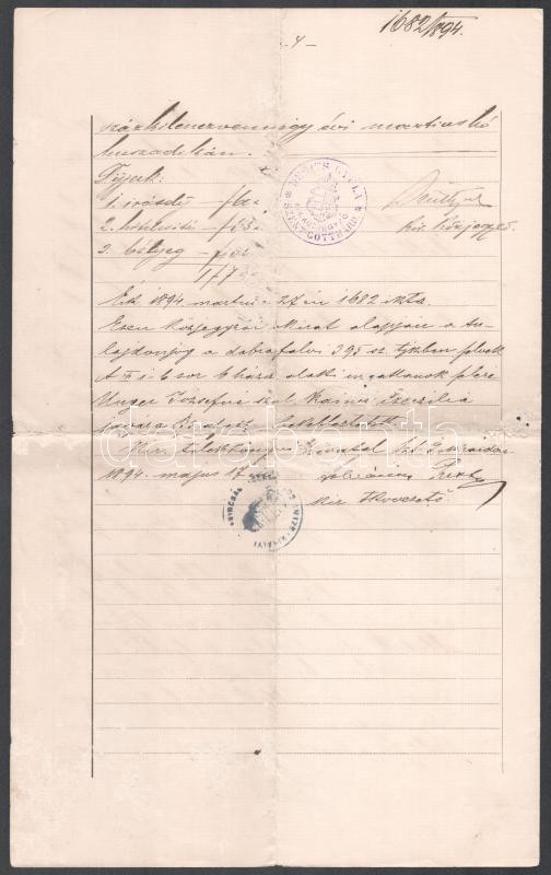 Leírás: 1894 Szentgotthárd, hiteles kiadvány 50kr okmánybélyeggel