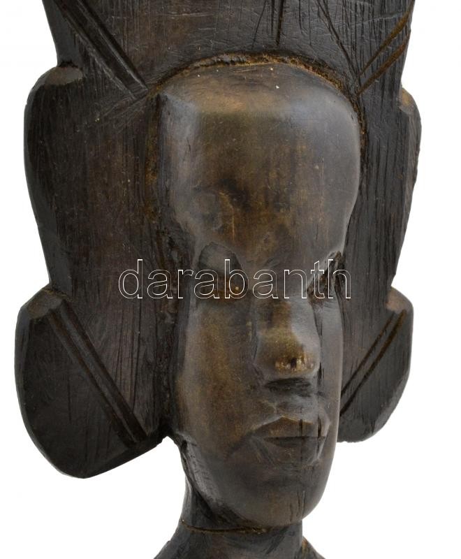 Leírás: Istennő alak. Keményfa faragott fa szobor. 32 cm