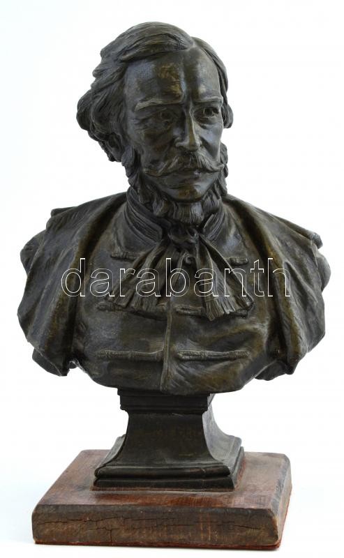 Leírás: Kossuth Lajos mellszobra. Mázas kerámia, fa talapzaton. Jelzés nélkül. Kopásokkal. 40 cm
