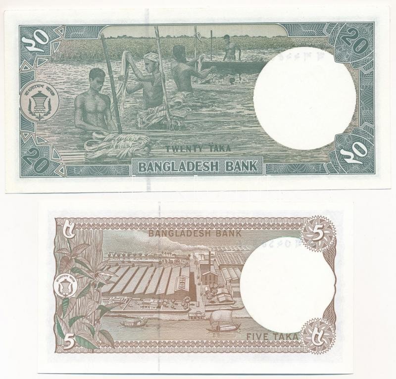 Bangladesh 1981. 5 Taka + 1988. ... https://www.darabanth.com/hu/379-Gyorsarveres/379.0/Numizmatika/Kulfoldi-bankjegyek~2000013/Bangladesh-1981-5T-plus-1988-20T-TI--Bangladesh-1981-5-Taka-plus-1988-20-Taka-CUnc-Krause2325-27~II2140697